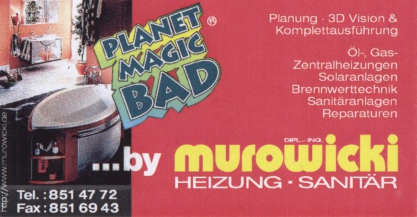 Gasgeräte, Gaskesel Dipl. -Dipl.-Ing.Murowicki Haustechnik, Notdienst, Sofortdienst, Störungsdienst, Rohrbruch ,Verstopfung, 24 Stunden Notdienst für Berlin, Steglitz Wielmersdorf Schöneberg Grunewald, Dahlem, Schmargendorf,Zehlendorf, Tempelhof,Marienfelde, Mariendorf, Britz Buckow,Rudow, Kreuzberg, Charlotenburg, Westend,Wannsee,Lichterfelde, Friedenau,Lankwitz,Marienhöhen, Neukölln, Kreuzberg, Rudow, Lichtenrade, Nikolassee, Schlachtensee, Düppel, Tegel, Hermsdorf, Haligensee, Weinmeister Höhen,Spandau, Kladow ,Gatow, Reinikendorfg,Wiettenau, Waidmannslust, Wedding, Tiergarten,Kladow,Gatow, Groß GleinikeHeizung, Ölfeurung, Gasfeuerung, Gaskessel, Vaillant, Junkers, Buderus, Viessmann, Wolf, Saunier Duval, DWS, Rohrreinigung, Verstopfung, Rohrbruch, Installationen, Wasser, Gas, Heizung, Wasserschaden beseitigung, Austrocknung, Elektro-Warmwassergeräte,Steibel Eltron Siemens, Vaillant, Junkers, Sofordienst,Notdienst, http://www.planetmagicbad.de http://www.planetmagicbad.de/ http://www.murowicki.de Murowicki@t-online.de Dipl.-Ing. Marian Murowicki ,12161 Berlin, Tel. 030/ 851 47 72 Notdienst 030/859 33 27 Fax 030/851 69 43 Beratung, Planung und Montage im Bereich Haustechnik, Heizung, Bad und Klimatisierung. Kessel und Thermeaustauschprofi, Heizungsanlagen für Einfamilienhäuser und Wohnanlagen. bietet Sanitär- und Heizungstechnik;